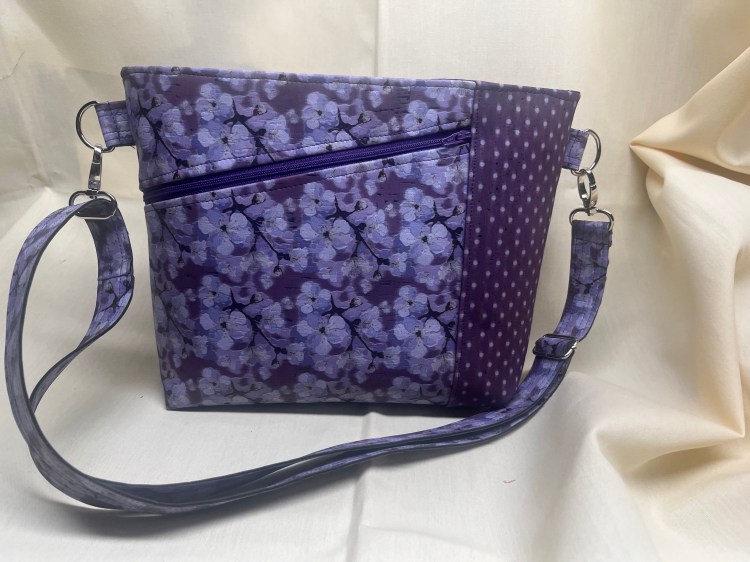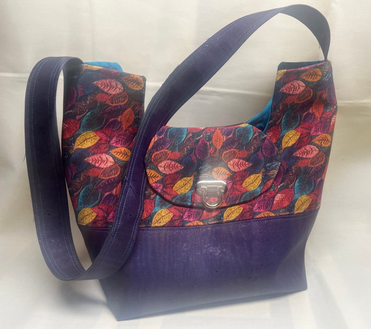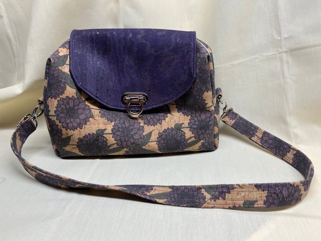 Tuscany Tote – 16 pockets with a snap closure. Zipper closure available. (16 ½” wide at the top x 12″ tall x 4″deep)Kona Carryall – snap closure (20″ across the top x 16 ½” tall x 5″ deep)Scalloped Tote and Wallet – Tote has a large outside pocket on bag; clutch has removable strap and zipper pocket. Foam interfacing. (Bag – 16″x 11 ½” x 3″ deep; clutch – 8 ½” x 5″ x ½” deep.) Sold as a set.Sofia Cinch-Up Bag – Perfect pouch for makeup! Closes with cord and toggle locks. Top flap with velcro closure and a handle. Interior zippered pocket. (12 ½” diameter with 4″ high side walls)Clam Up Zippered Pouches – perfect for storing and carrying make-up, sewing supplies, tech gear, and more. Five sizes available.Cork Tote – Open or zippered top. Six pockets inside. Two sizes: Large 11 ¾”W X 9″D X 9 ½”T; Small 9 ½” W X 7″D X 9 1/2″ T.Shoulder Bag/Fanny Pack -Bag can be worn around the waist or over the shoulder. Zipper closure. (W 14.75″, H 5.5″, D 3.5″)Cailey Handbag – Elegant bag with icicle strap anchors, interior zippered pockets, recessed zipper closure. Pictured bag (with matching wallet) made from cork. Available in cork or fabric. (14″W x 10″H x 4″D)Riviera Handbag – Recessed zippered top with two large outside pockets and eight inside pockets. (16 ½”W at top x 9 ½” tall x 4″ deep)Sew Together Wallet – Features a zipper pocket, coupon pocket, ID card pocket and eight credit card slots. Removable shoulder strap. (4 ½” high x 8″ wide x 1″ deep, 27″ strap)Charlotte Cell Phone Bag – credit card pockets under flap, back cell phone pocket, inside zipper pocket & adjustable handle. (6″W x 9″H)Sudbury Saddle Bag – this wool asymmetrical bag features a curved front and interior pockets. Magnetic closure. (11″ H x 13″W)